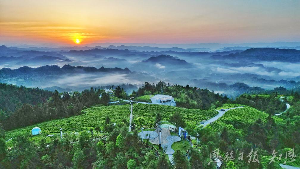 在格尔切市三树坪村,藤茶产业不仅创造了财富,还创造了诗画。每当雨停天晴,云雾从山谷中升起,落在摇曳的藤蔓上,形成壮丽的云海。
